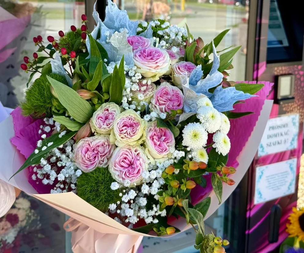 Każdy bukiet przygotowywany jest ręcznie, z dbałością o estetykę i harmonię kolorów. Do wyboru są kompozycje klasyczne – z róż, goździków czy tulipanów – oraz bardziej nowoczesne i zaskakujące połączenia. W ofercie nie brakuje też małych, uroczych bukiecików idealnych na drobny gest, jak i większych kompozycji na wyjątkowe okazje.