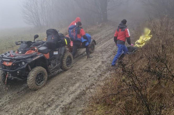 Niecałe dwie godziny od zgłoszenia mężczyzna został odnaleziony przez patrol ratowników w pobliżu czerwonego szlaku w rejonie Cegiełki nad Wysową. Był mocno wyczerpany i wychłodzony, po nocy spędzonej w lesie. Po wstępnym ogrzaniu został przetransportowany quadem, a następnie samochodem terenowym do zespołu karetki pogotowia w Wysowej - mówi Maciej Więcek z Krynickiej Grupy GOPR