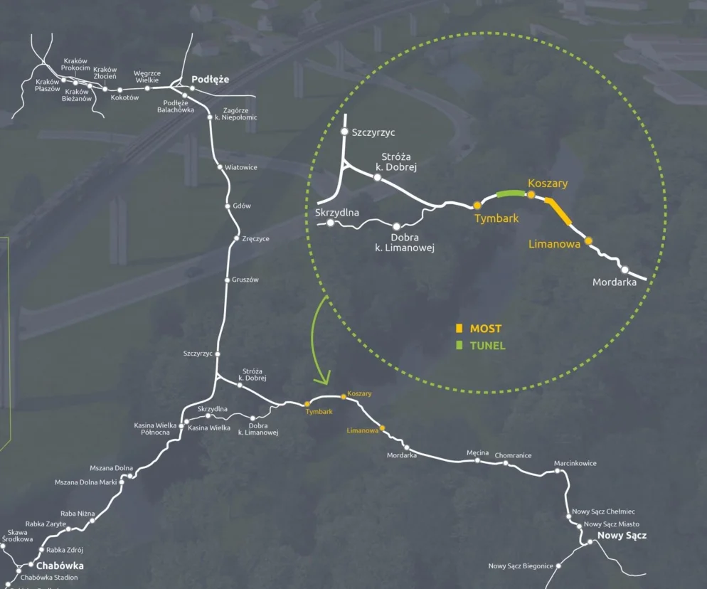 Przebudowana linia kolejowa Limanowa - Tymbark będzie częścią dużego projektu, który Kraków ma połączyć z Podhalem i Nowym Sączem. Dziś prace budowlane trwają już na 5 odcinkach. Budowa części z nich ma się zakończyć jeszcze w tym roku.