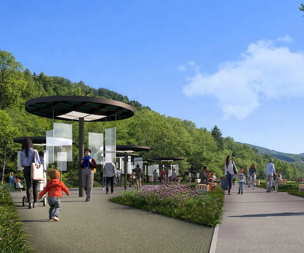 W Myślcu nad Popradem powstanie między innymi boisko do siatkówki plażowej, ścieżki pieszo-rowerowe z miejscem serwisowania rowerów, łąka kwietna wspierająca bioróżnorodność, wiata z paleniskiem i kuchnią polową, plac zabaw dla najmłodszych oraz park kultury z leżakami i strefą odpoczynku.