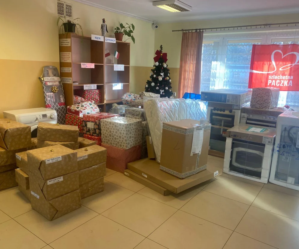 W paczkach, które ufundowali darczyńcy znalazła się przede wszystkim żywność, ubrania, kołdry, ręczniki, ale też meble czy sprzęt RTV – AGD oraz zabawki dla dzieci. Zdarzają się też prezenty bardziej nietypowe, takie jak na przykład opał.