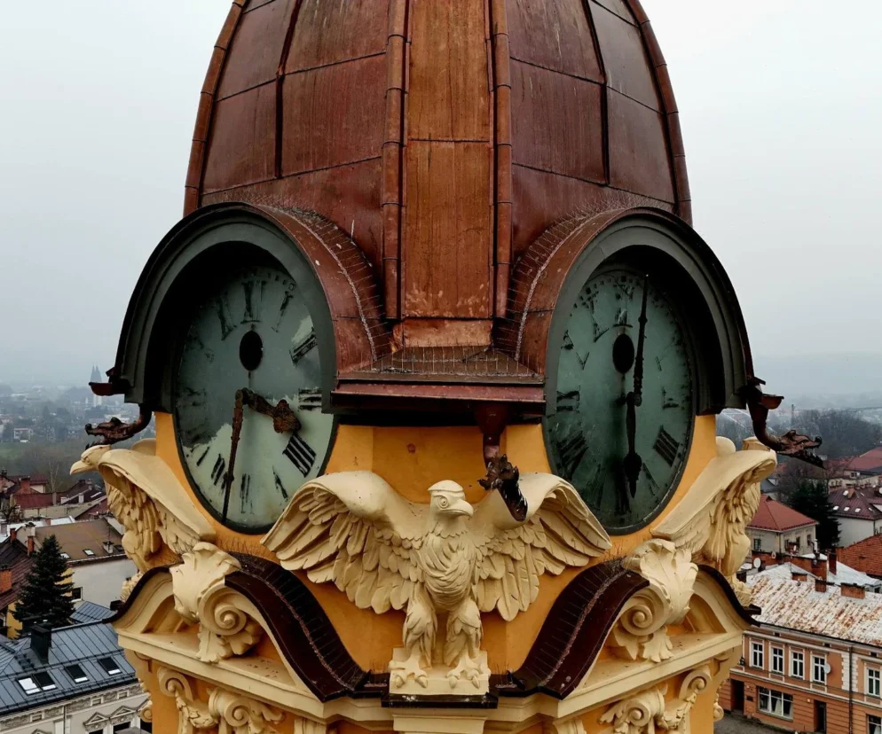 Zegar na wieży ratuszowej znowu się zatrzymał. To już kolejny raz, w ciągu ostatnich kilku miesięcy. W listopadzie przestał działać na kilka tygodni, po tym, jak jego opiekun Jan Dobrzański wyłączył mechanizm, żeby pracownicy remontujący ratusz nie uszkodzili go. Teraz znowu zegar znowu stanął. Powodem jest renowacja szklanych tarczy. Specjalna firma, którą wynajęło miasto, naprawia je od wewnątrz.
